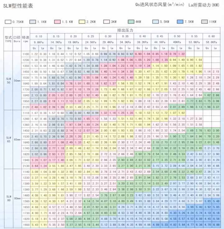 SLW型性能表