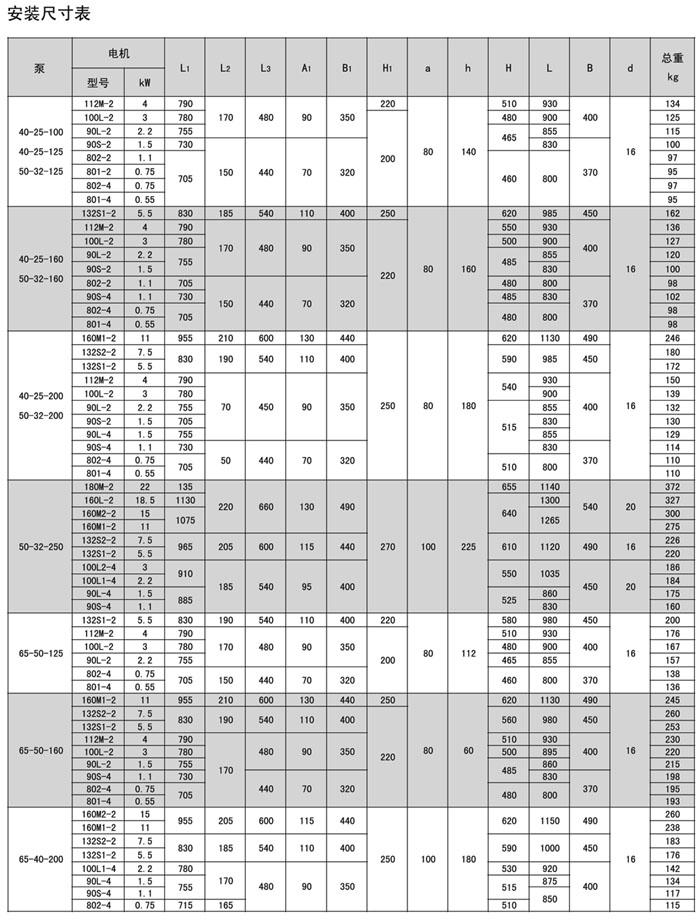 本系列泵共有33個基本型,每種型號都可以通過切割葉輪獲得較低的流量和揚程,用戶在訂貨時可向本廠提出要求。